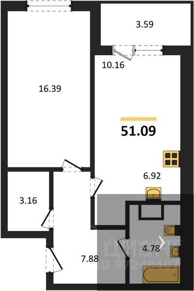 Общая площадь51,09 м2