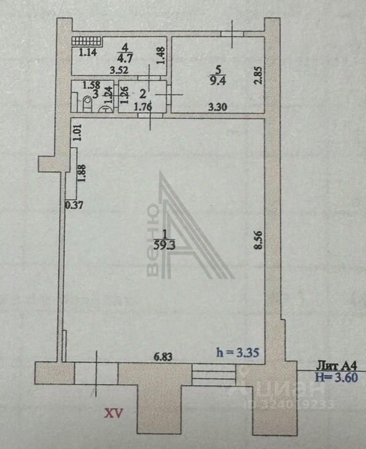 Помещение правильной формы, оборудован сан узел и 2 подсобных помещения.