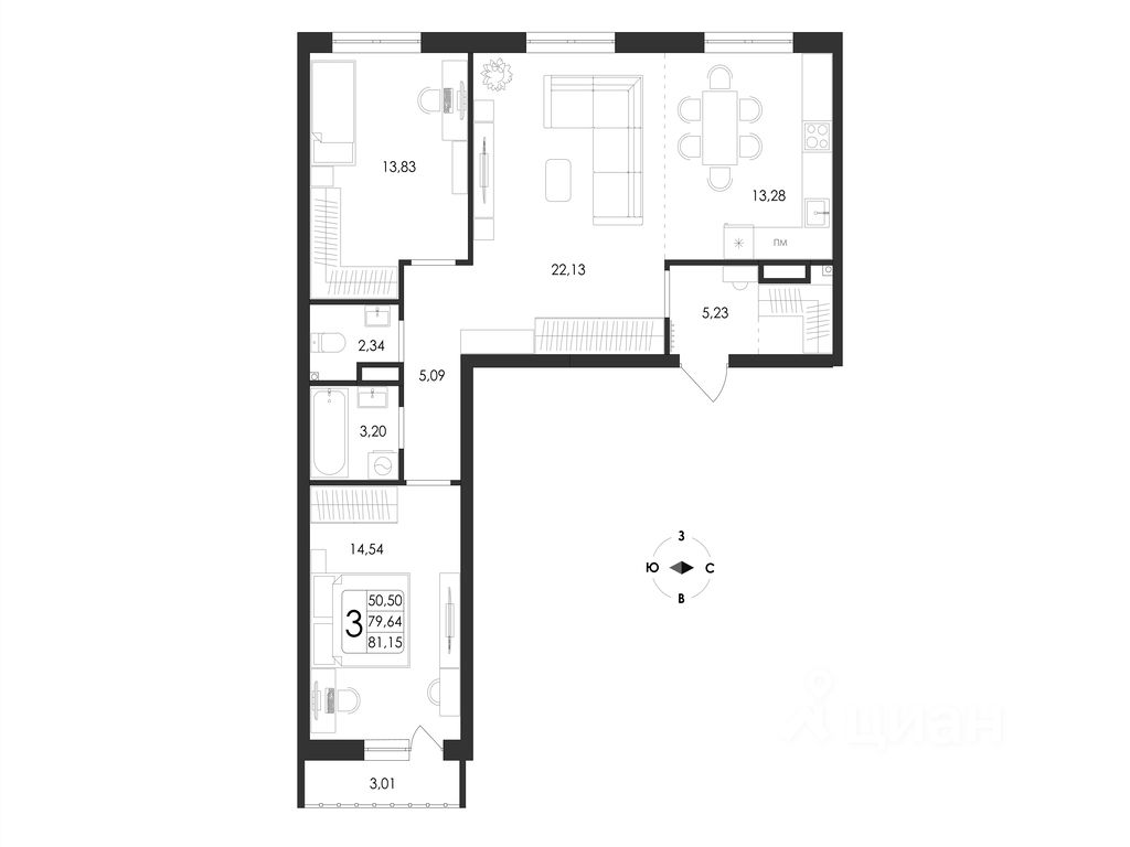 Общая площадь81,15 м2