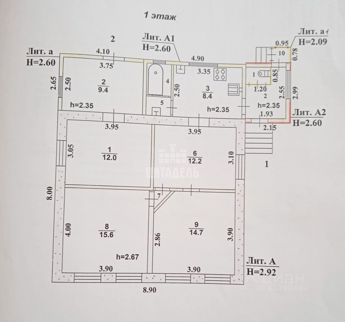 В доме 4 комнаты, кухня, санузел, ванная, и два коридора.