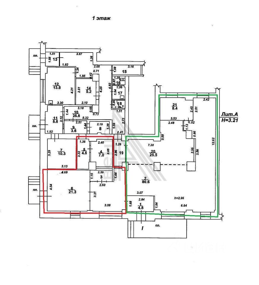 -129 кв.м, выделено на планировке зеленым цветом (вход с ул.Менделеева).