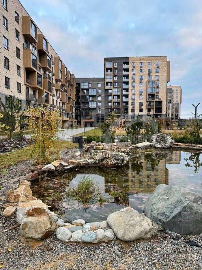 На территории жилого комплекса есть все условия для того чтобы наслаждаться жизнью за городом: двор огражден от посторонних и закрыт для въезда автомобилей, множество современных детских и спортивных площадок, озелененная территория со своим прудиком, лежаки, беседки, оснащенные мангальной зоной, кинотеатр под открытым небом, большое количество мест на закрытой и открытой парковке.