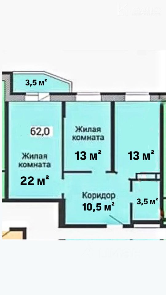 Комната крайняя - 22 кв.м