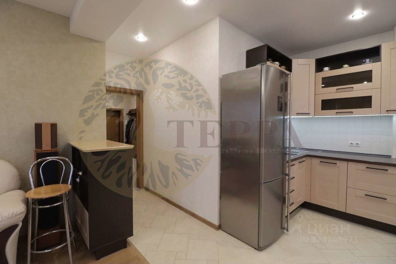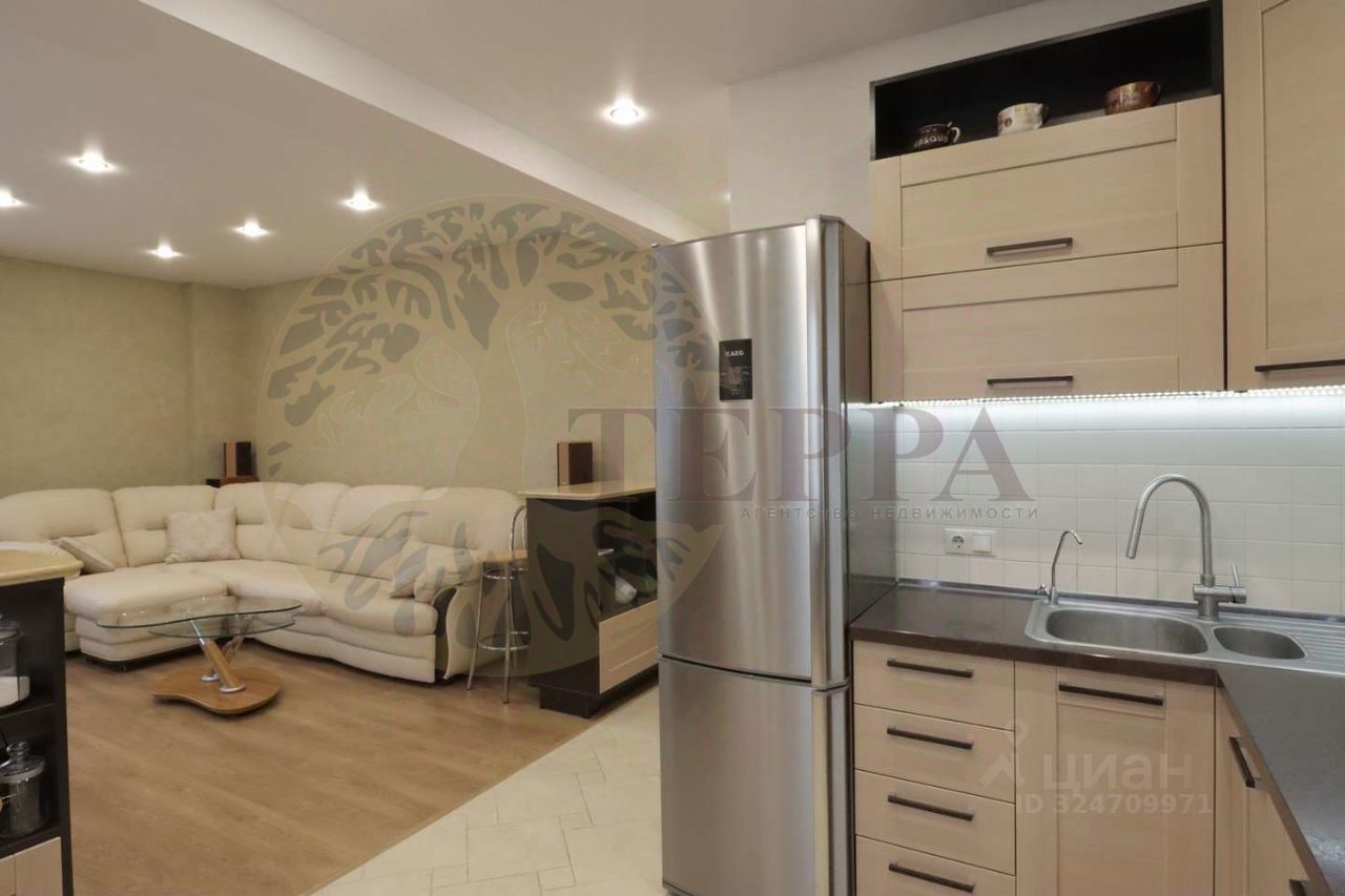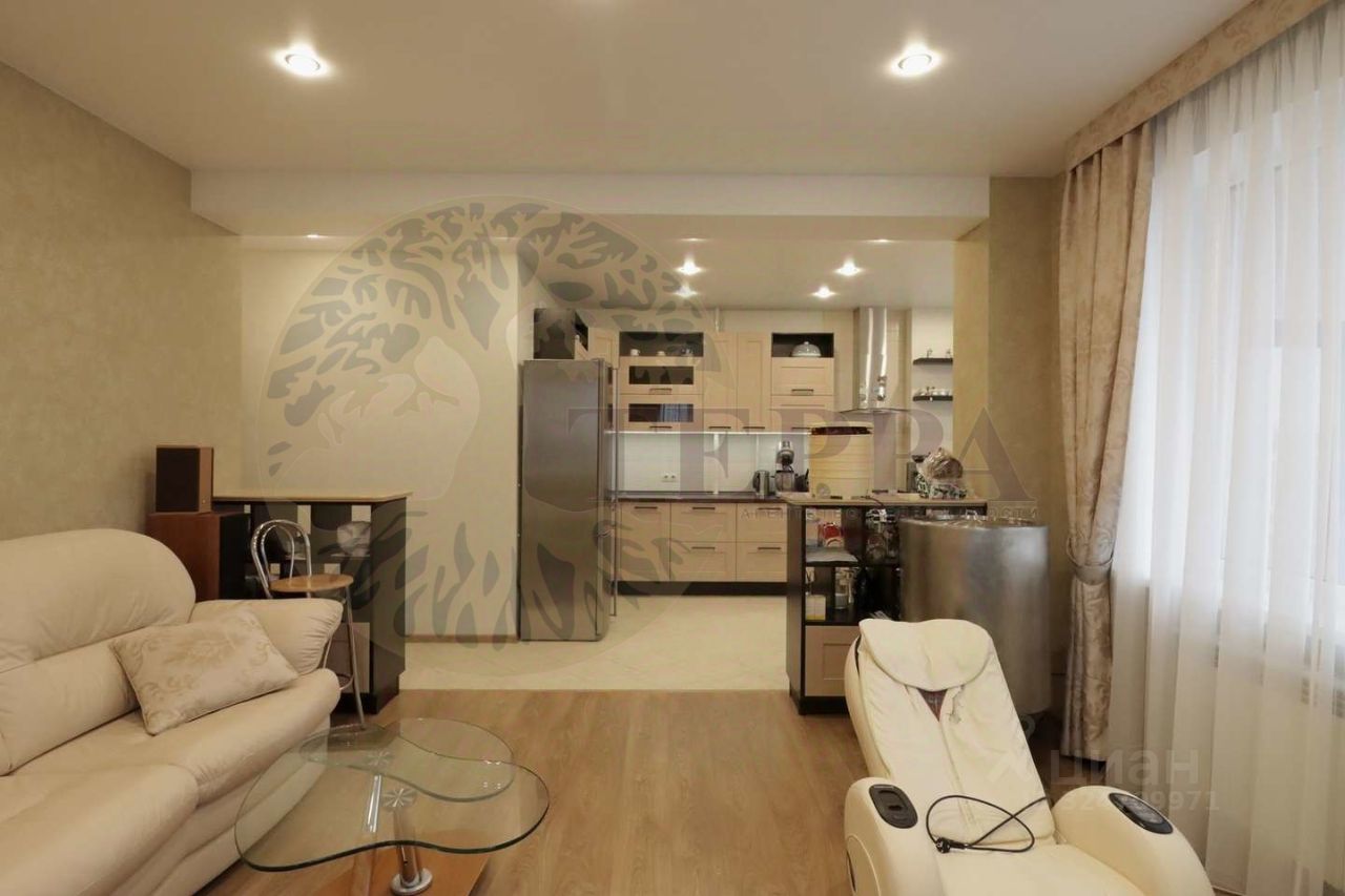 Продуманная планировка объединяет просторную кухнюгостиную и приватную зону отдыха, а дизайнерский ремонт выполнен из качественных материалов в единой современной концепции. Кухнягостиная полностью оборудована всей необходимой техникой и готова к повседневной жизни и приёму гостей.