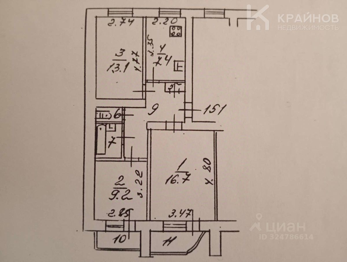Три удобные комнаты 16,7, 13,1, 9,2 кв.м.
