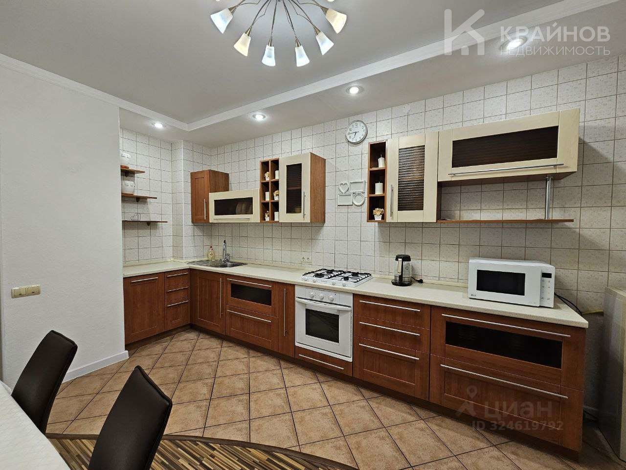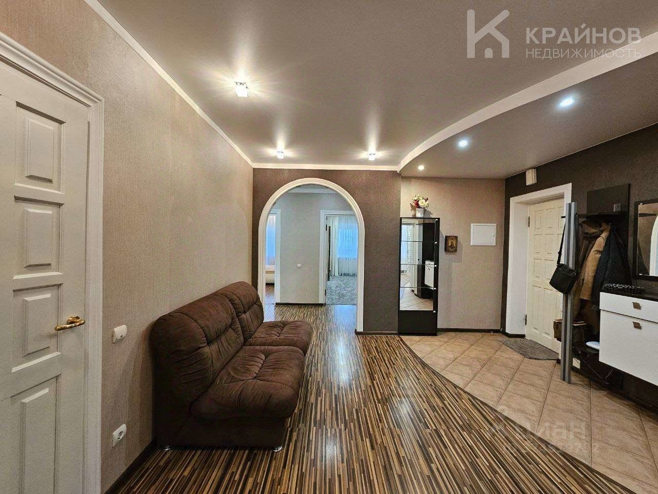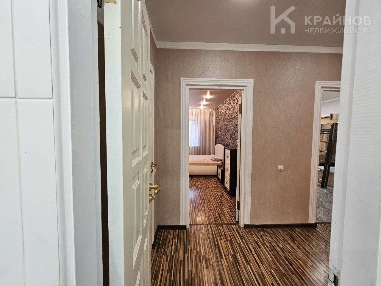На полу ламинат, частично плитка на кухне и входной группой. Натяжные потолки, в детской постелен новый ковролин. В зале поклеены дорогие обои. На кухне мягкие декоративные обои, под покраску. Установлены межкомнатные деревянные двери. На кухне хорошая техника Ariston, Whirlpool. Сантехника в хорошем состоянии.