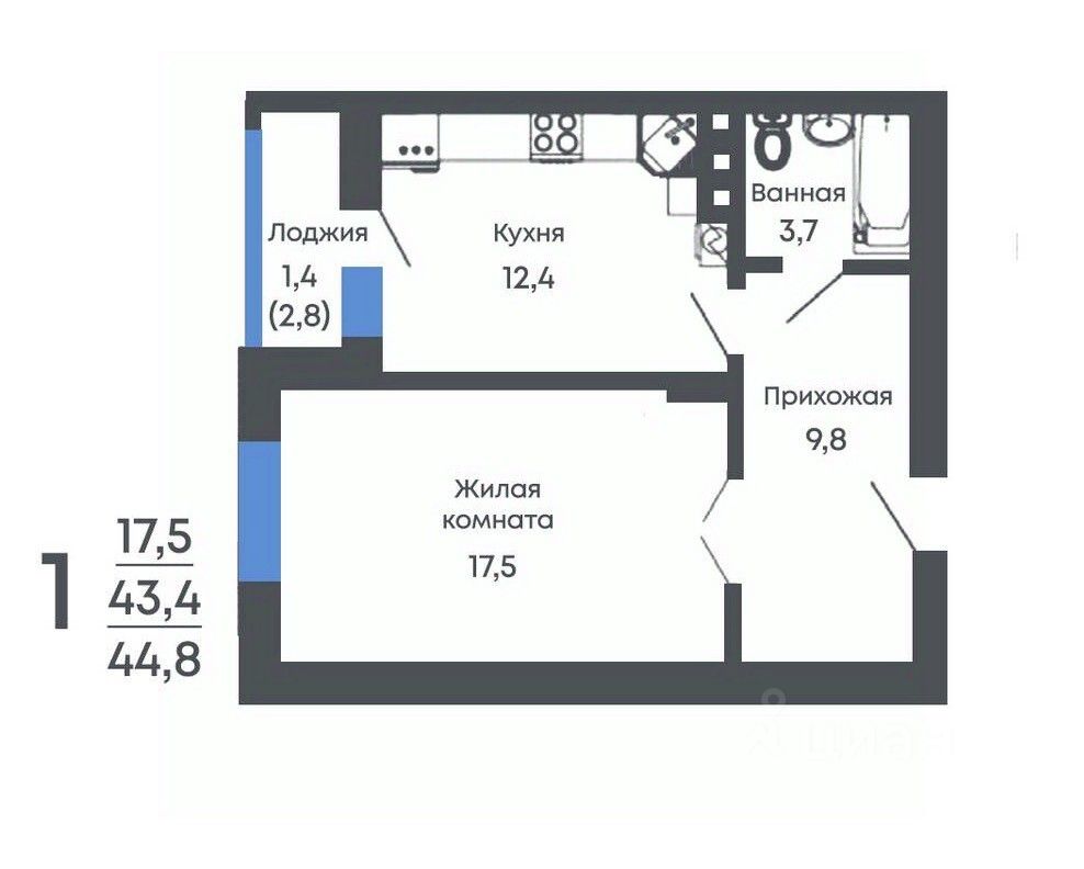 Общая площадь44,8 м2