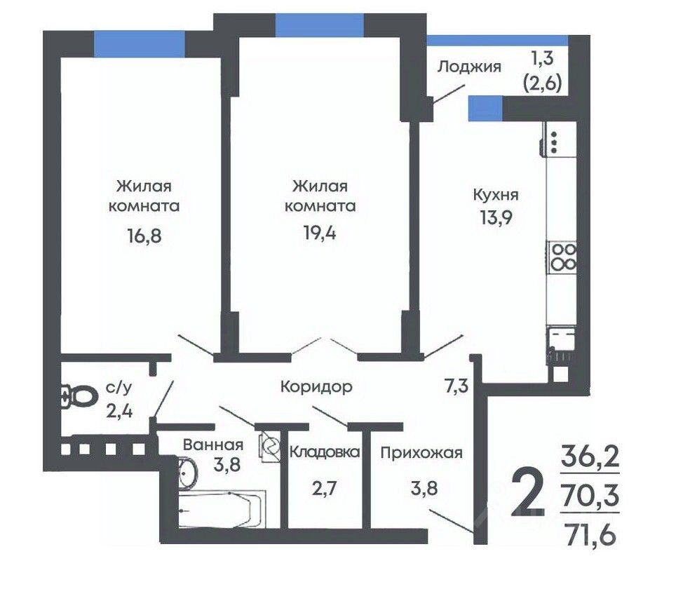 Общая площадь71,6 м2