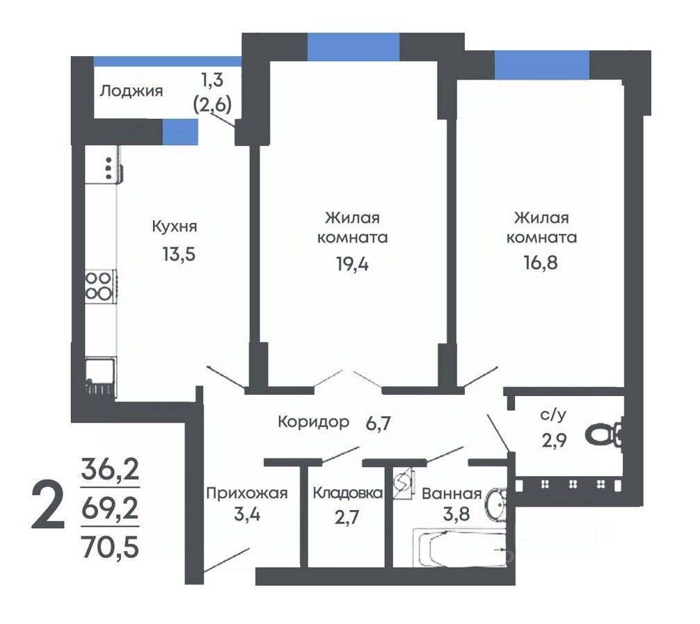 Общая площадь70,5 м2