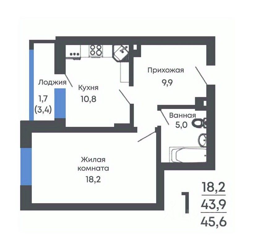 Общая площадь45,6 м2