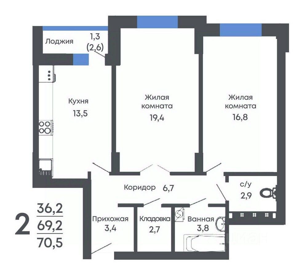 Общая площадь70,5 м2