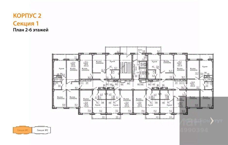 Квартира: 2 к 50,50 кв.м., 6 этаж в комплексе Ю, 2 очередь, корп.2, сдача: 1кв. , этажей: 15, адрес Воронеж г., Цимлянская ул., д. 10в корп. 2, Застройщик: Еврострой.