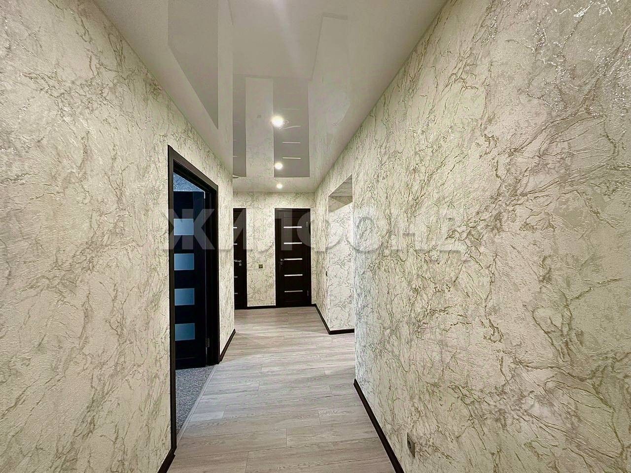 В квартире выполнен хороший ремонт, все в светлых тонах (обои, натяжные потолки, кварцвинил на полу - коридор и кухня, в комнатах - ковролин).