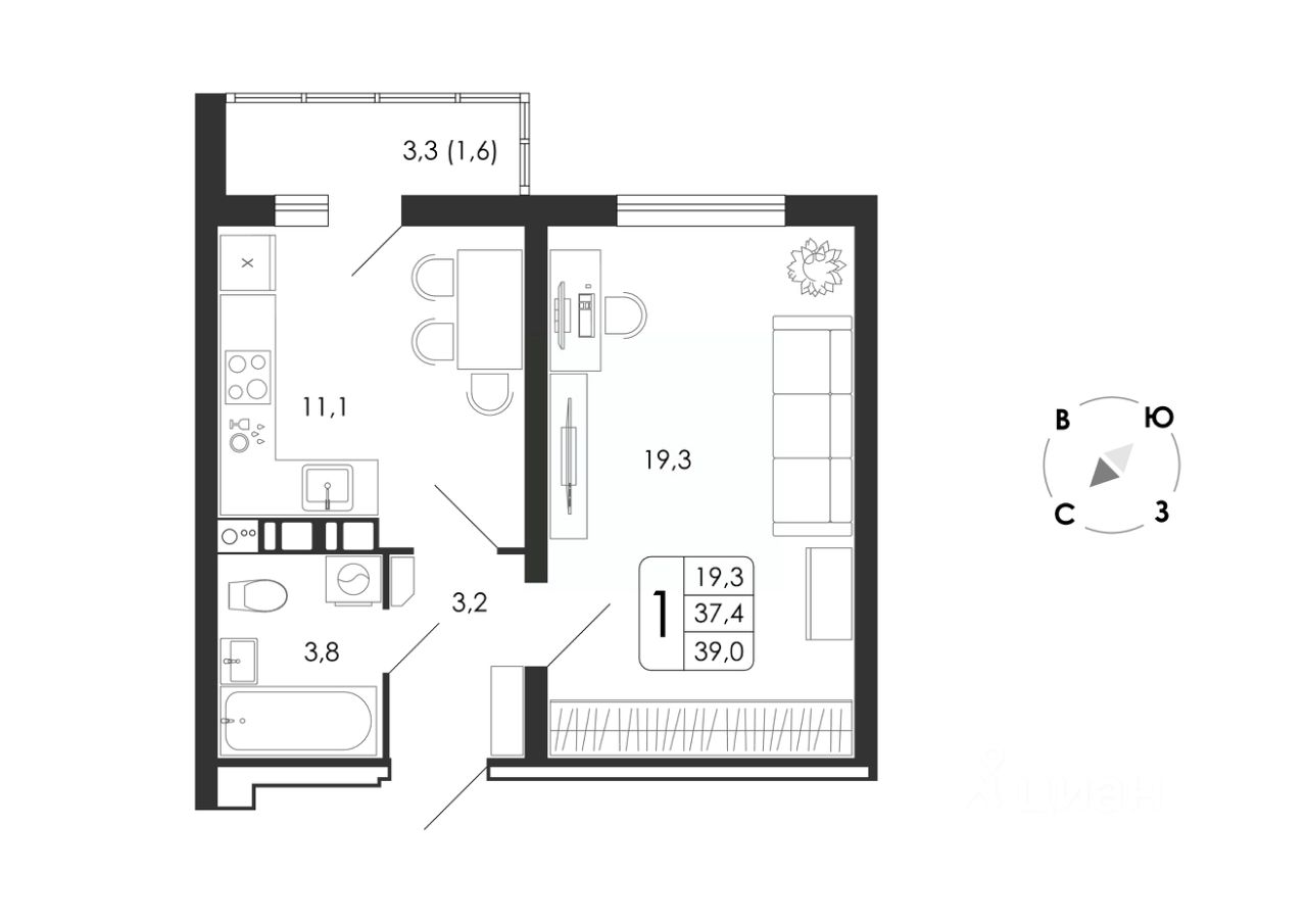 Общая площадь39 м2