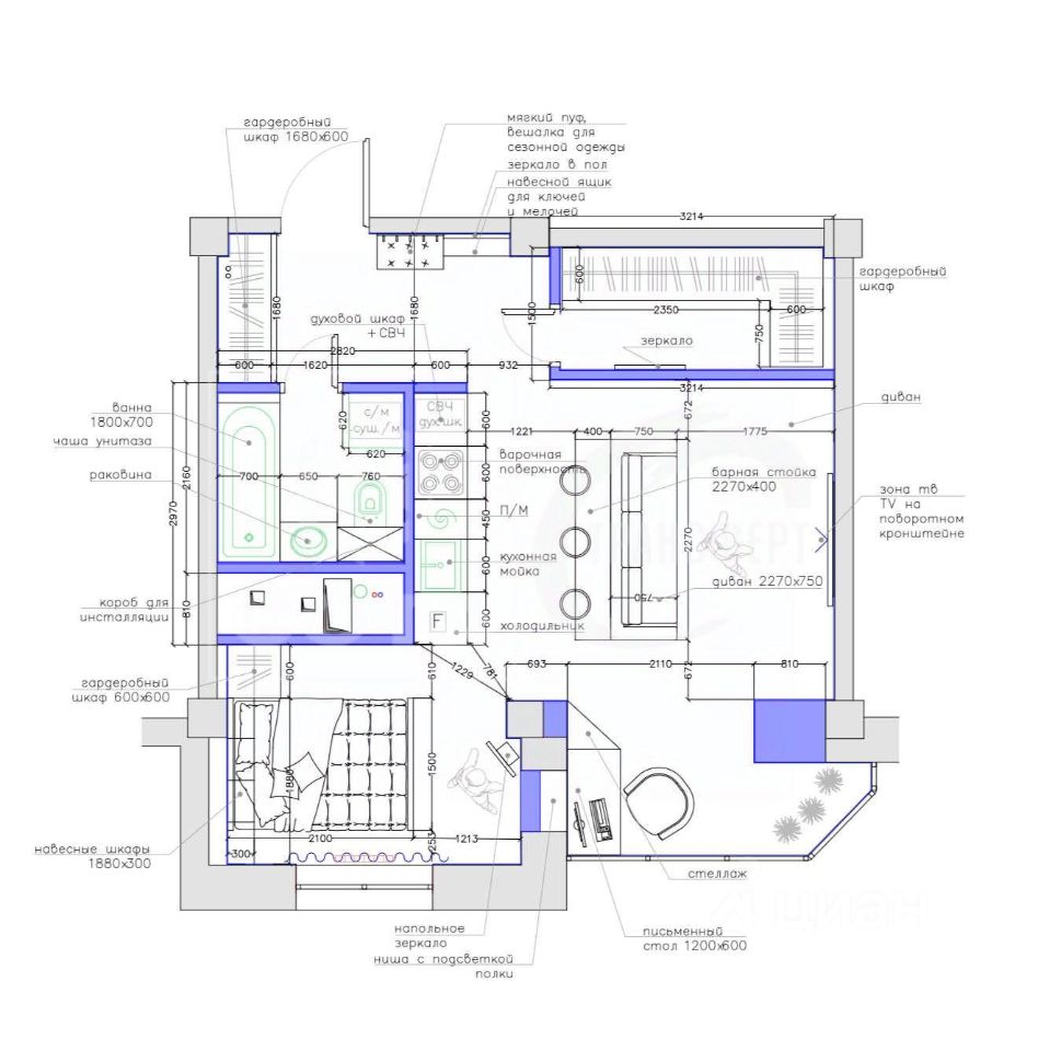 Идеальный вариант для современного человека или пары, ценящих функциональность, технологичность и уют.
