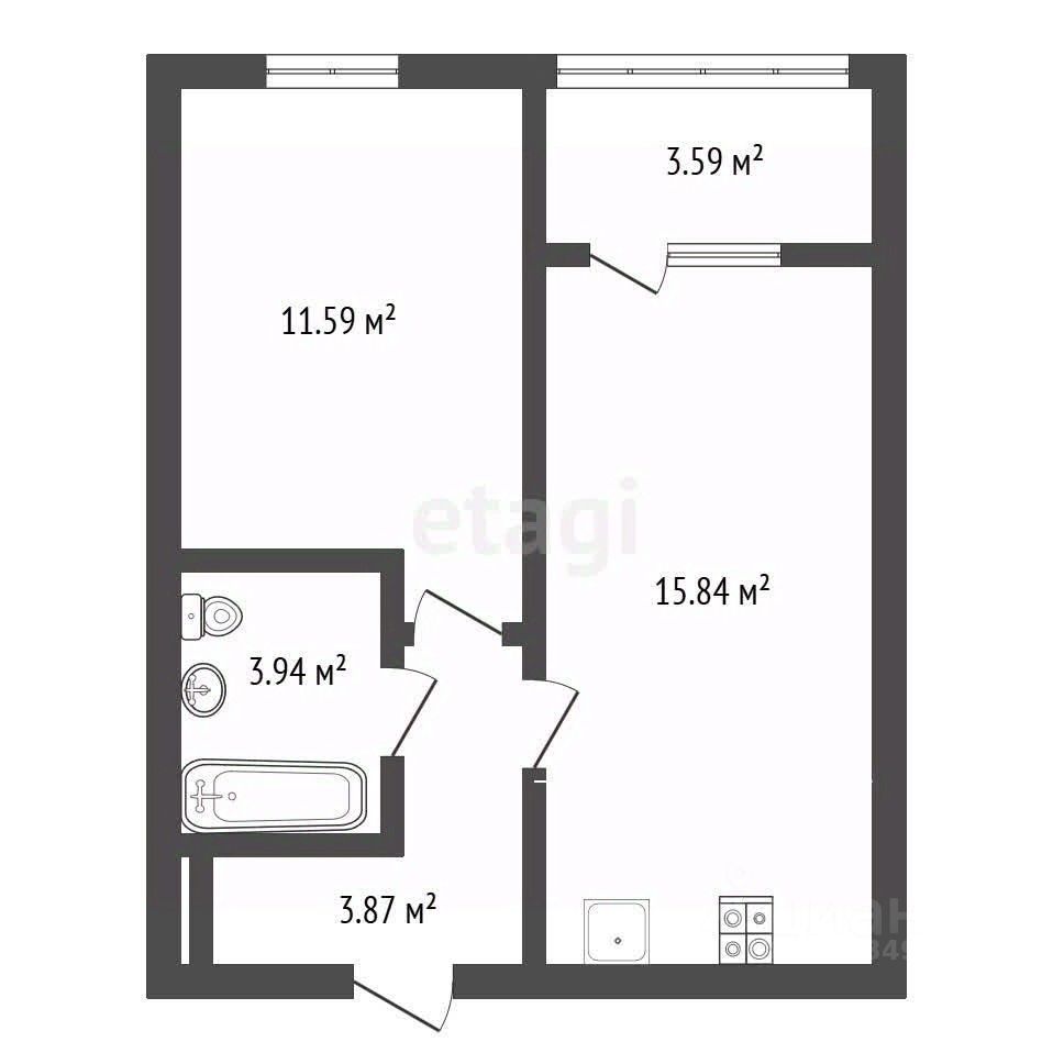 Продается однокомнатная квартира площадью 37 м².