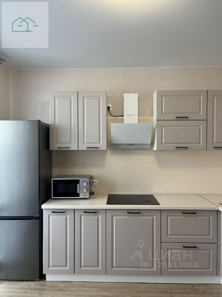 Кухня: встроенная мебель,мощная вытяжка, варочная панель, микроволновая печь, холодильник, стол,стулья.