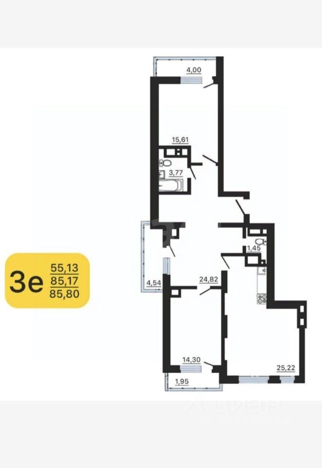 Продается евро-трехкомнатная квартира, общей площадью 85.8 кв. метров в новом современном монолитно-кирпичном доме ЖК Эверест, введенным в эксплуатацию в конце 2023 года. Текущая цена ниже чем аналогичная квартира у застройщика в черновом варианте, без отделки.