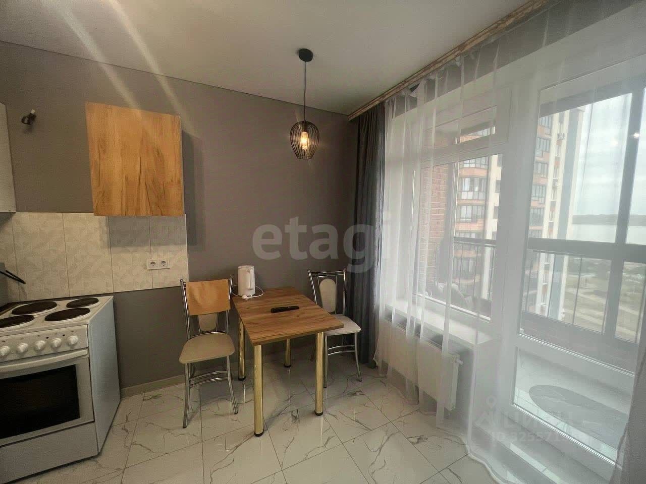 Объект отличается рациональной планировкой: изолированная комната площадью 11,9 м², кухня аналогичного размера и собственный балкон с выходом из кухонной зоны. Ключевым преимуществом является панорамный вид на Воронежское водохранилище из окон.