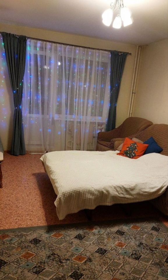В квартире имеется просторная жилая комната, в которой установлены необходимая мебель и техника для комфортного проживания: диван, шкаф для одежды, 2 кресла, компьютерный стол.