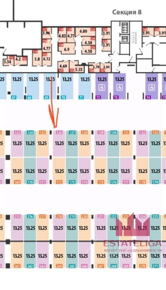 10 метров до лифта секции 8 !
