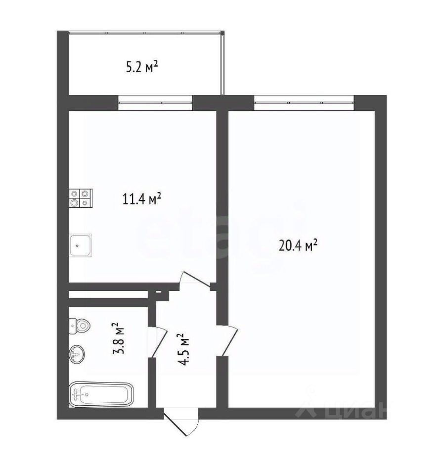 Помимо этого квартира отличается продуманной планировкой с изолированной комнатой 20.6 кв. м, просторной кухней-гостиной 11.4 кв. м и лоджией 5.2 кв. м.