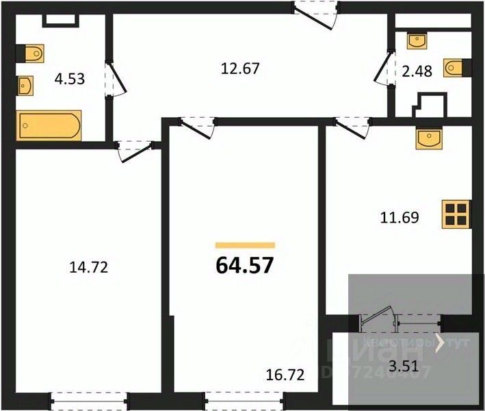 Общая площадь64,57 м2