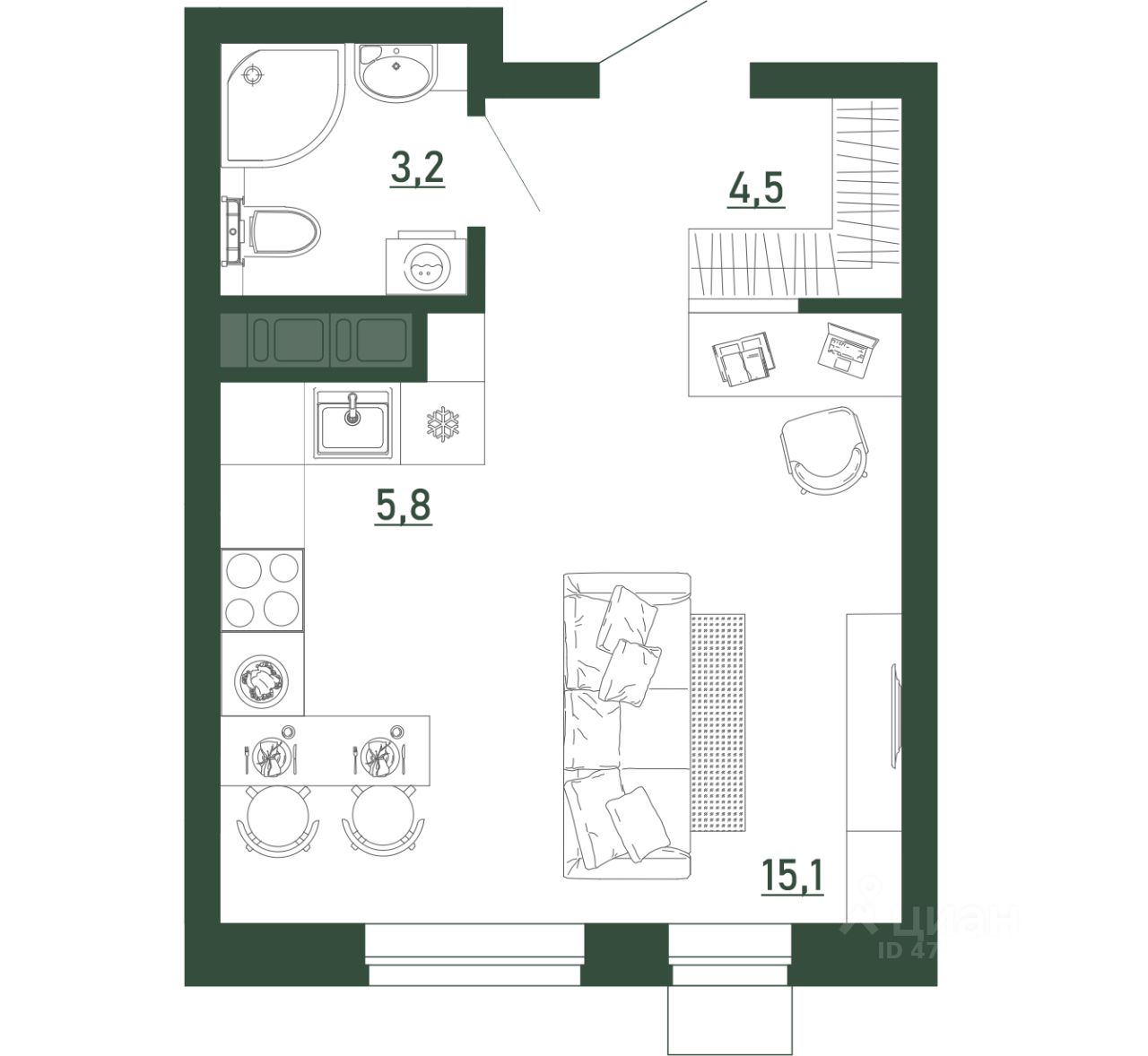 Жилая площадь15,1 м2