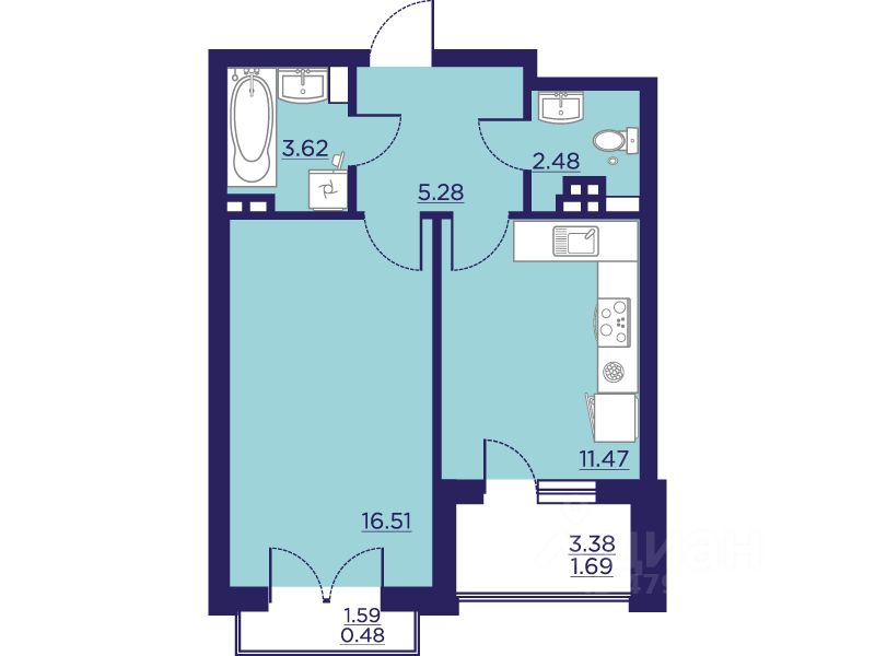 Общая площадь41,53 м2