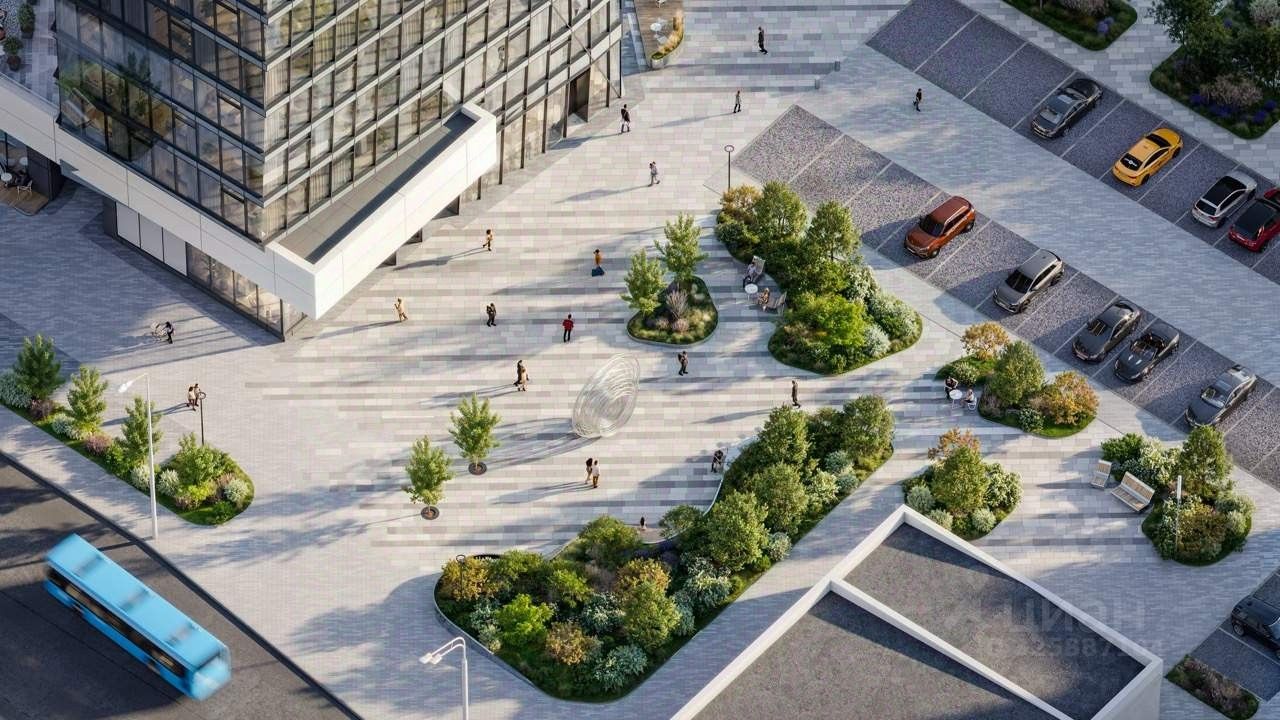 ЧЕЛОВЕКОЦЕНТРИЧНАЯ СРЕДА Все, что нужно для продуктивной работы и качественного отдыха: - Ресторан с летней террасой - Шопинг-променад - Фитнес-центр - СПА - Гольф-симулятор - Конференц-залы - Коворкинги - Переговорные комнаты, в том числе ZOOM-переговорные - Сквер и событийная площадь - Подземная и наземная парковки с зарядками для электромобилей - Велопарковка и парковка для самокатов со станцией зарядки