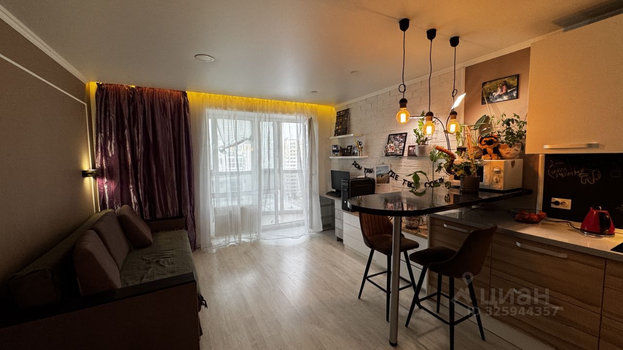 Продается уютная студия с изюминкой площадью 30,5 кв.м. без учета лоджии на 12 этаже. В квартире ремонт в хорошем состоянии. Не требует вложений. Сан узел совмещенный, весь в плитке. Лоджия большая, с панорамными окнами.