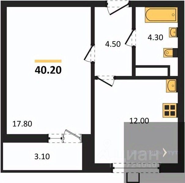 Общая площадь40,2 м2