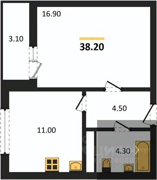 Общая площадь38,2 м2