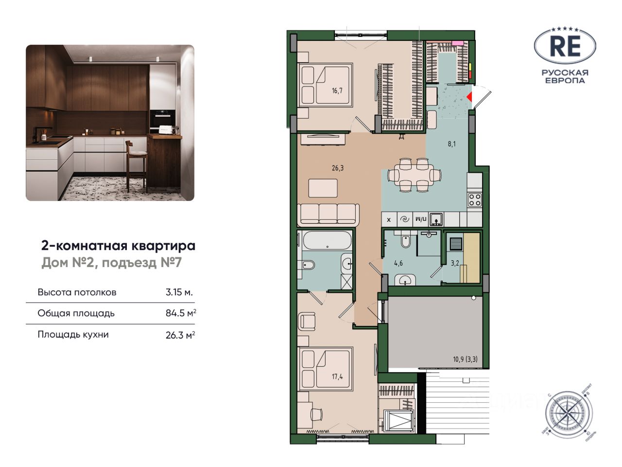 Общая площадь84,5 м2