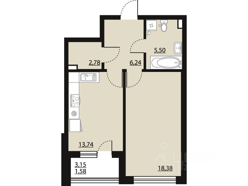 продам 1-к, Московский проспект, 1388 115 426 ₽