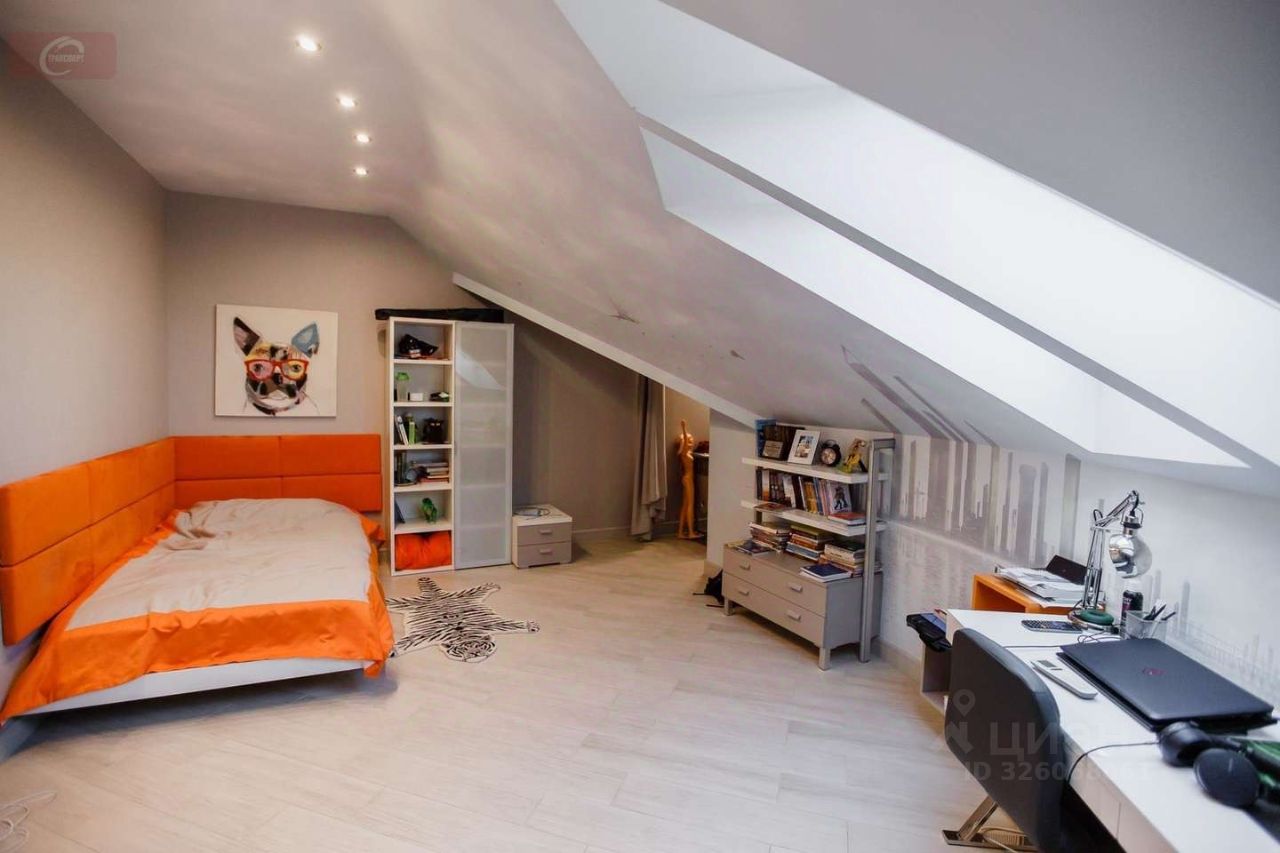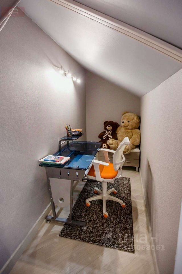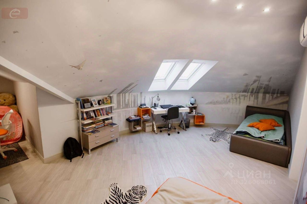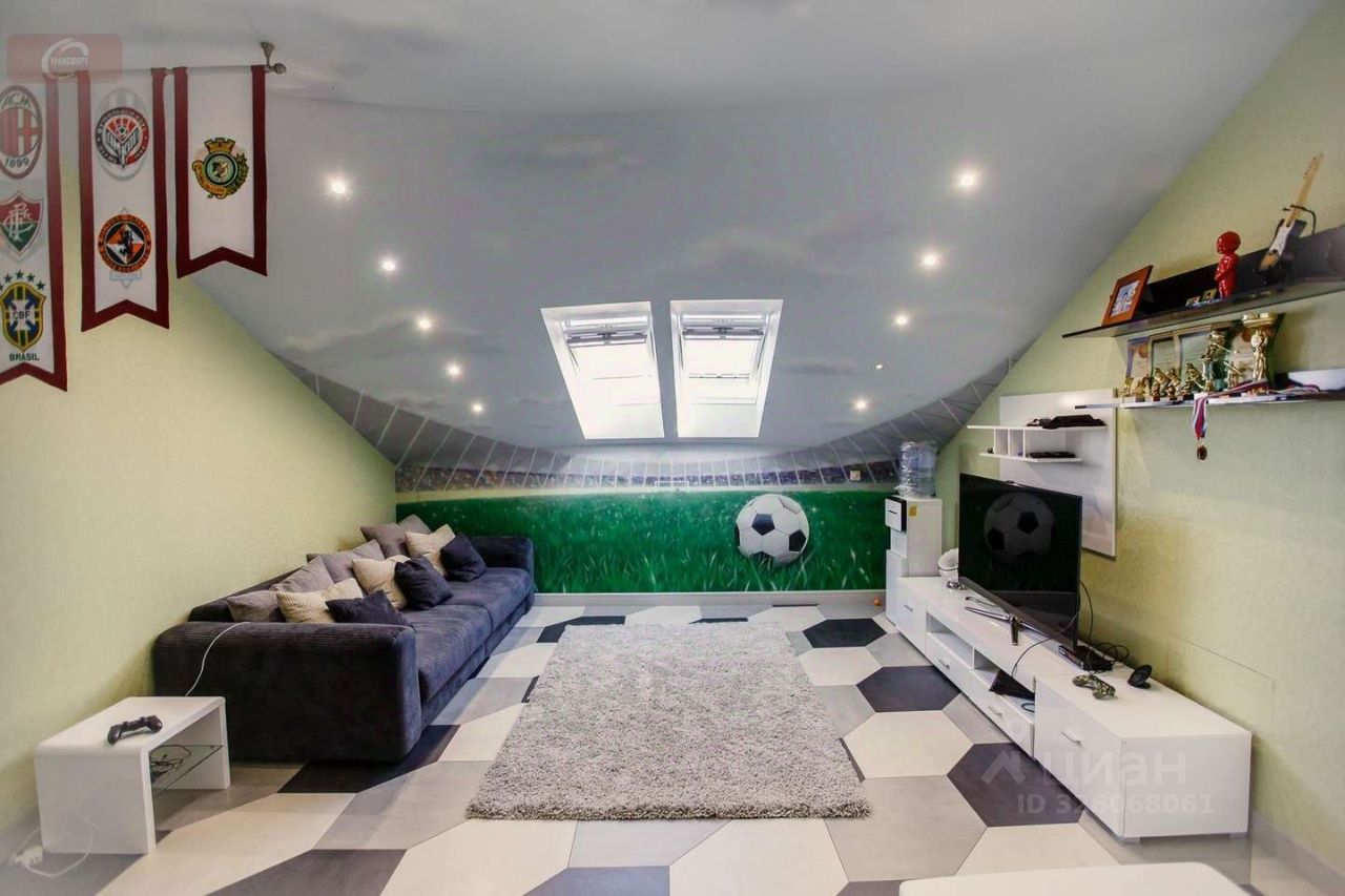 -На первом этаже находится кухня- гостиная (53 кв. мет.), гардеробная (16 кв. мет.), ванная комната (10 кв. мет.) с выходом в спальню (25 кв. мет.), а так же 2 балкона и 1 лоджия. Высота потолков- 2,95 м. На втором этаже три стилизованные детские комнаты: пиратская (24 кв. мет.) с гардеробной (10 кв. мет.) футбольная (29 кв. мет.) с душевой, подсобным помещением и город будущего (24 кв. мет.).