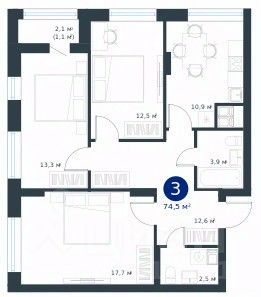 продам 3-к, Ворошилова, 1911 411 787 ₽