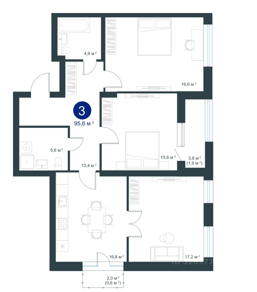 продам 3-к, Ворошилова, 1914 830 906 ₽