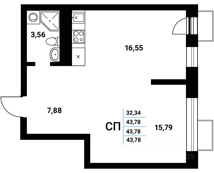 Продаётся студия в сданном доме (Чуева, 7 (2 этап) ), срок сдачи: III-кв. 2025, общей площадью 43.78 кв.м., на 12 этаже. Новый жилой комплекс ''Z-town'' от Специализированного застройщика ''Новый Код'' расположен на набережной Чуева в г. Воронеж.