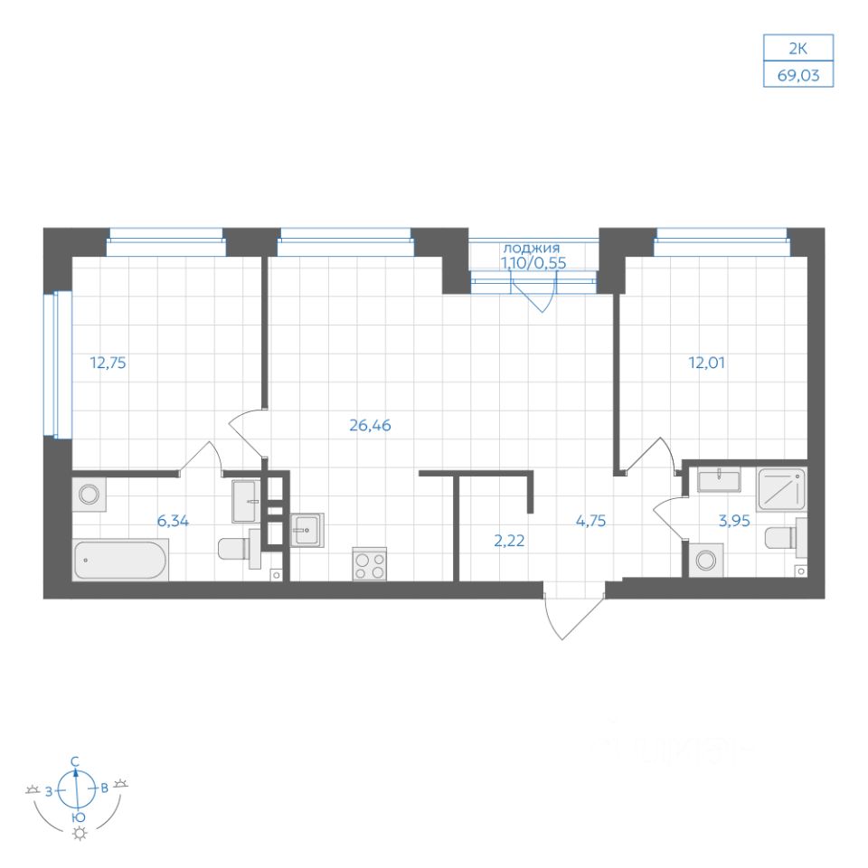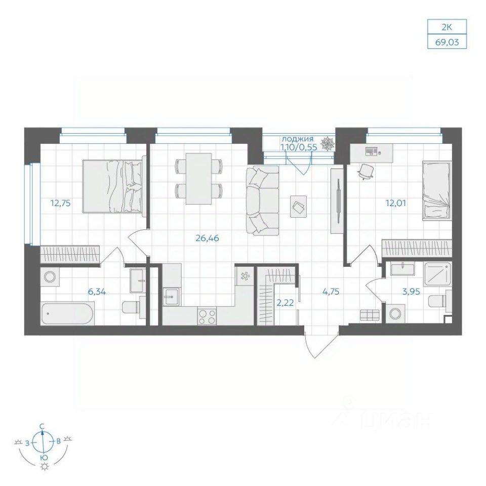 Общая площадь69,03 м2