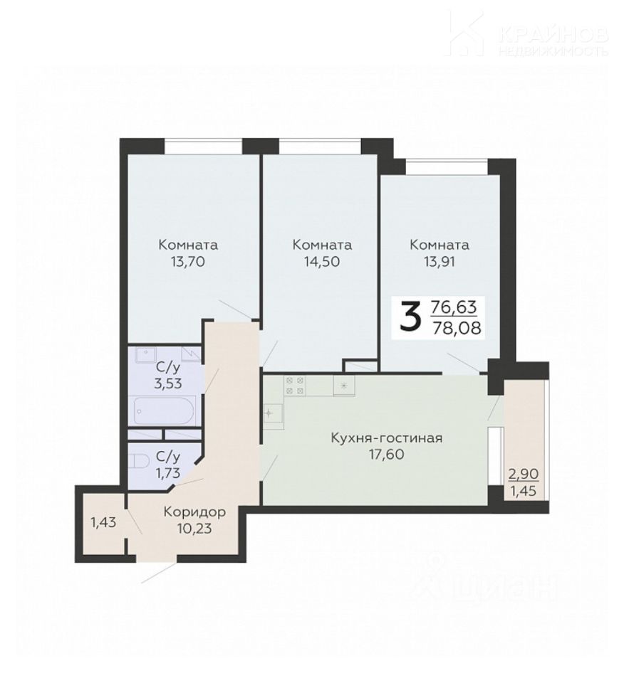 Общая площадь78,08 м2