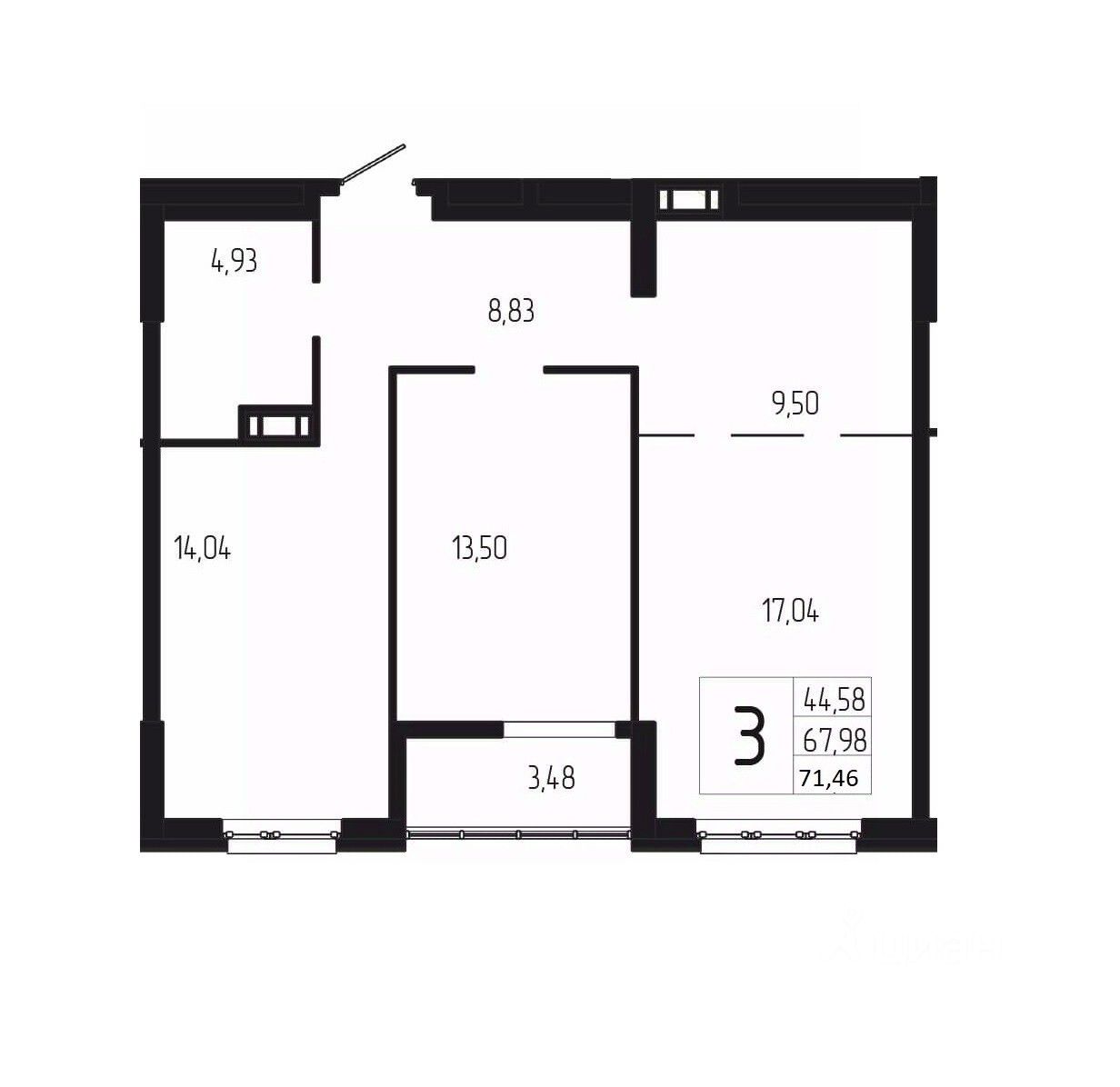 Общая площадь71,46 м2