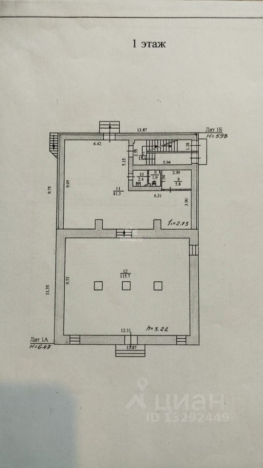 Первый этаж - 201 кв. м., без учёта щитовой - сдан в аренду. Второй этаж - 230 кв м. (сидит арендатор, мебель). Третий этаж - 106 кв. м. с выходом на крышу.