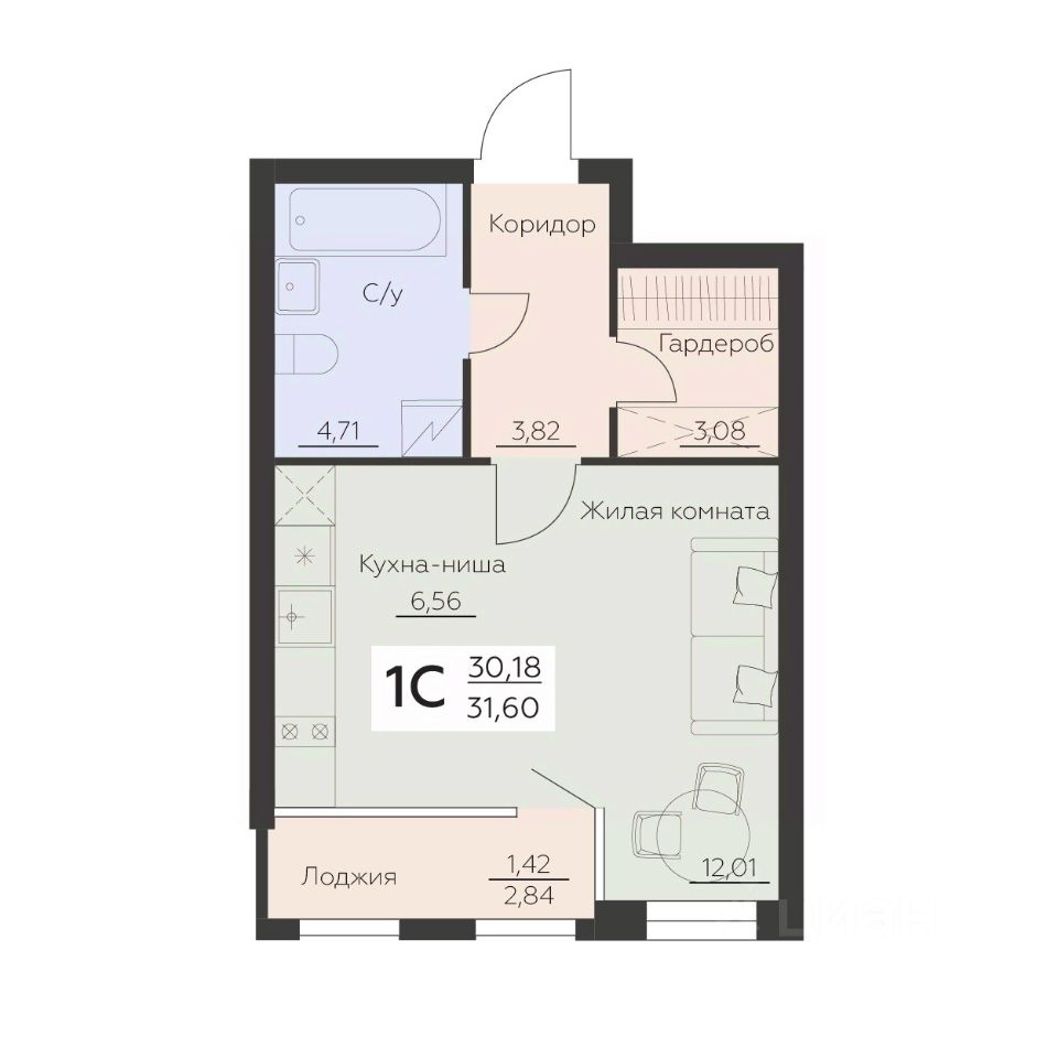 Общая площадь31,6 м2