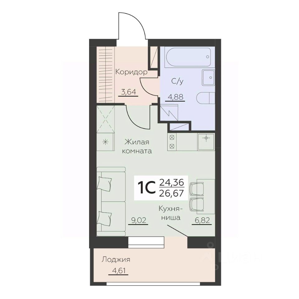 Общая площадь26,67 м2