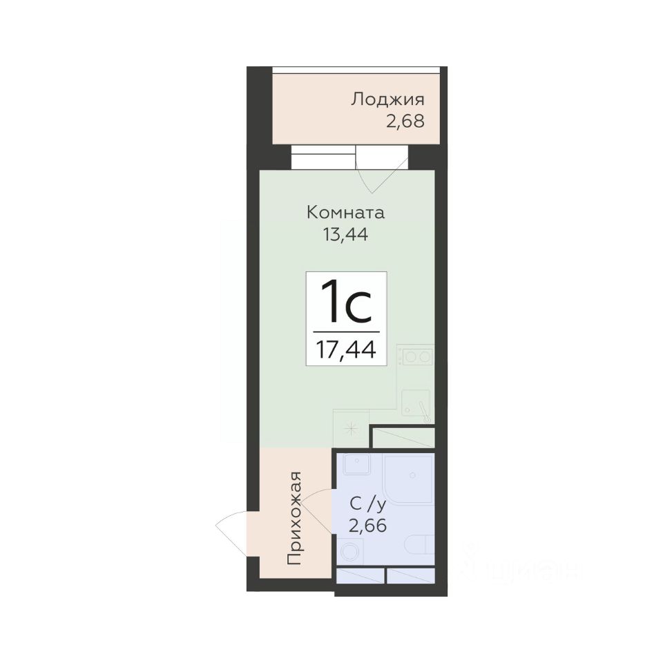 Общая площадь17,44 м2