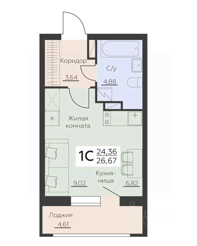 Общая площадь26,67 м2