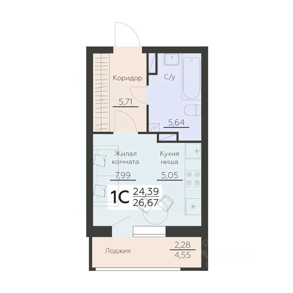 продам 1-к, Ленинградская, 29б4 104 513 ₽