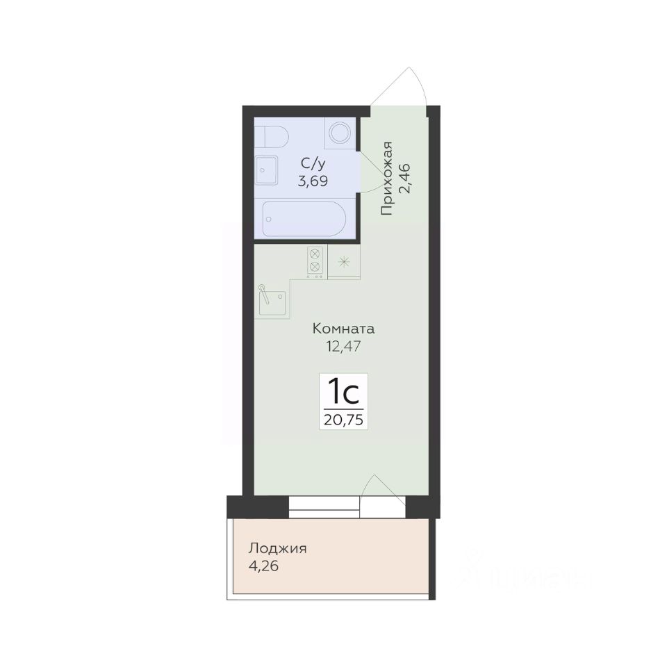 Общая площадь20,75 м2