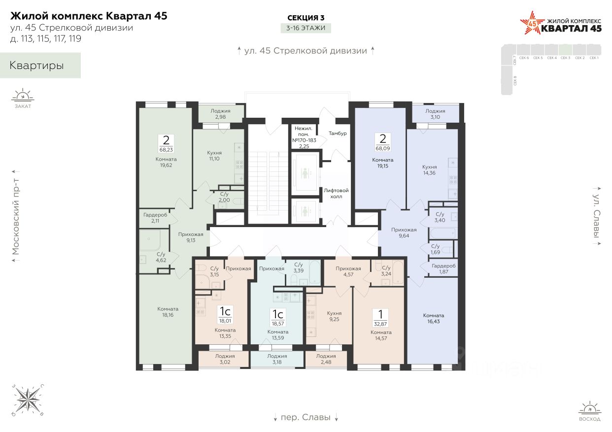 КВАРТАЛ 45 это амбициозный проект будущего сердца Московского проспекта. ЖК комфорт-класса, который строится по монолитно-кирпичной технологии.